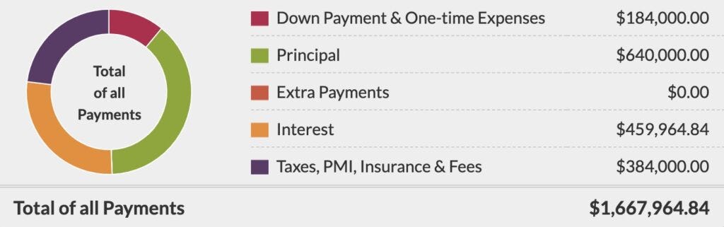 And, if you look at the total cost of the loan over 30 years, you will need to pay nearly $1,700,000. That is a pretty big number for a one bedroom house in a state that has the highest income tax rate and cost of living in the entire United States.