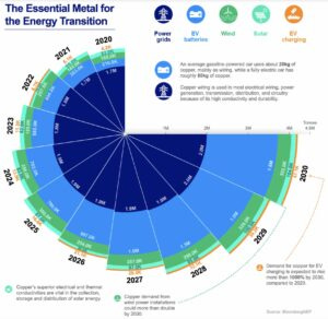 "Electrification is expected to increase annual copper demand to 36.6 million metric tons by 2031, with supply forecast to be around 30.1 million tons, creating a 6.5 million ton shortfall at the start of the next decade, according to consulting firm McKinsey & Co."