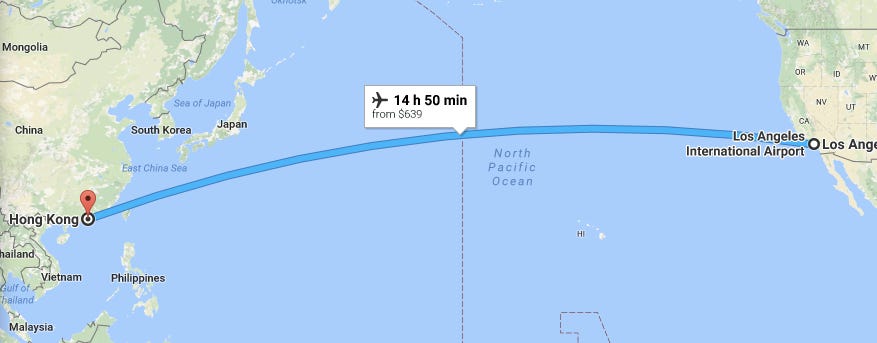 Right now, flights from Los Angeles to Hong Kong are around $600. That’s unbelievably cheap for a 14 hour flight.