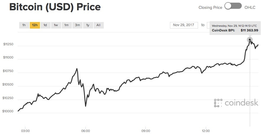 When I sat down to write this, late last night, Bitcoin was just over $10,000. After sleeping for about eight hours, I woke up to see that Bitcoin is now just over $11,000.