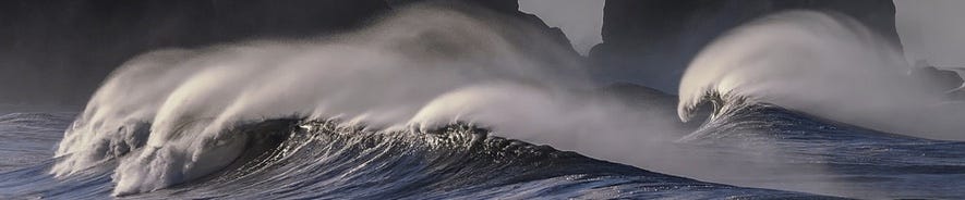 Now think of a wave in the ocean. Wind blows across the surface of the water, creating ripples. These ripples start to stack up on each other and create a wave of energy that travels across the ocean. Soon, that wave of energy comes close to the shore line. As the ocean floor becomes more shallow, the wave increases in height until it reaches a peak and then crashes down.