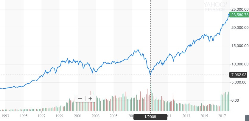 The housing bubble resulted in the US stock market dropping by over 50%, finally bottoming on March 9th of 2009.
