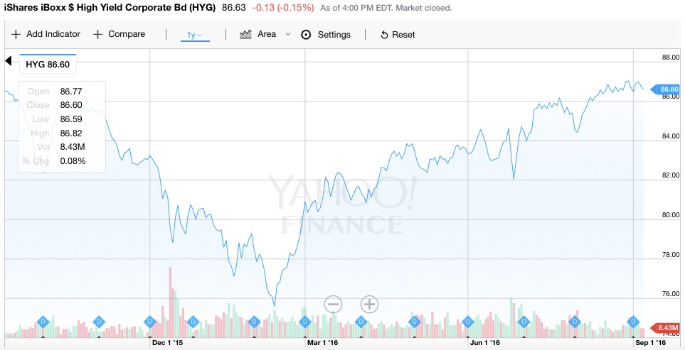 The easiest indicator is to look at the stock $HYG. This is an ETF of high yield bonds – better known as junk bonds.