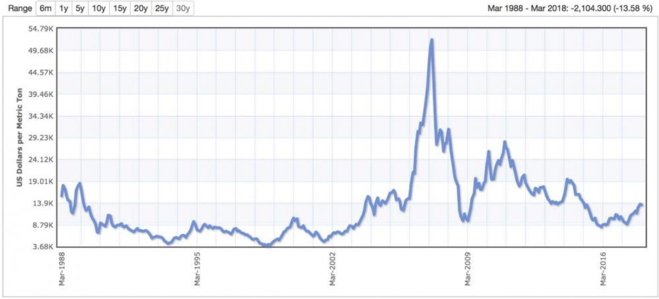 Here is nickel’s (the metal) 30 years price chart: