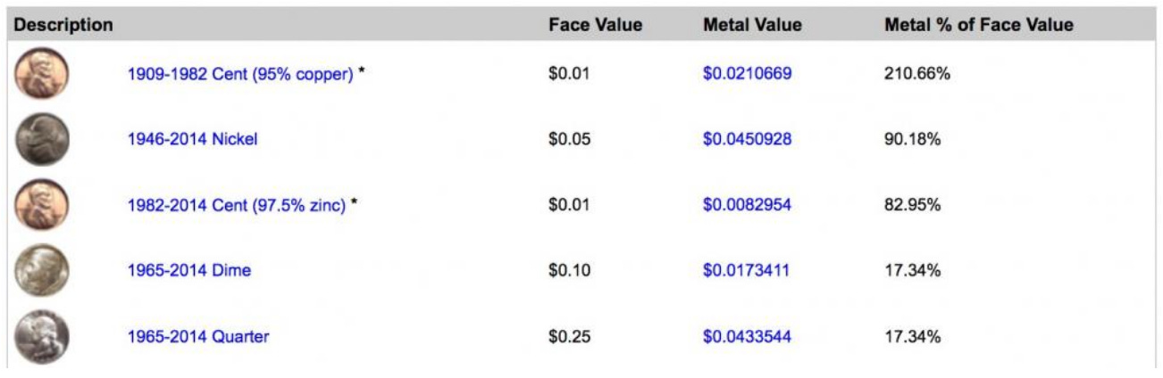Today, things have changed. Because of the inflationary nature of government currencies, the actual value of the metals in most coinage becomes worth more than what the currency represents.
