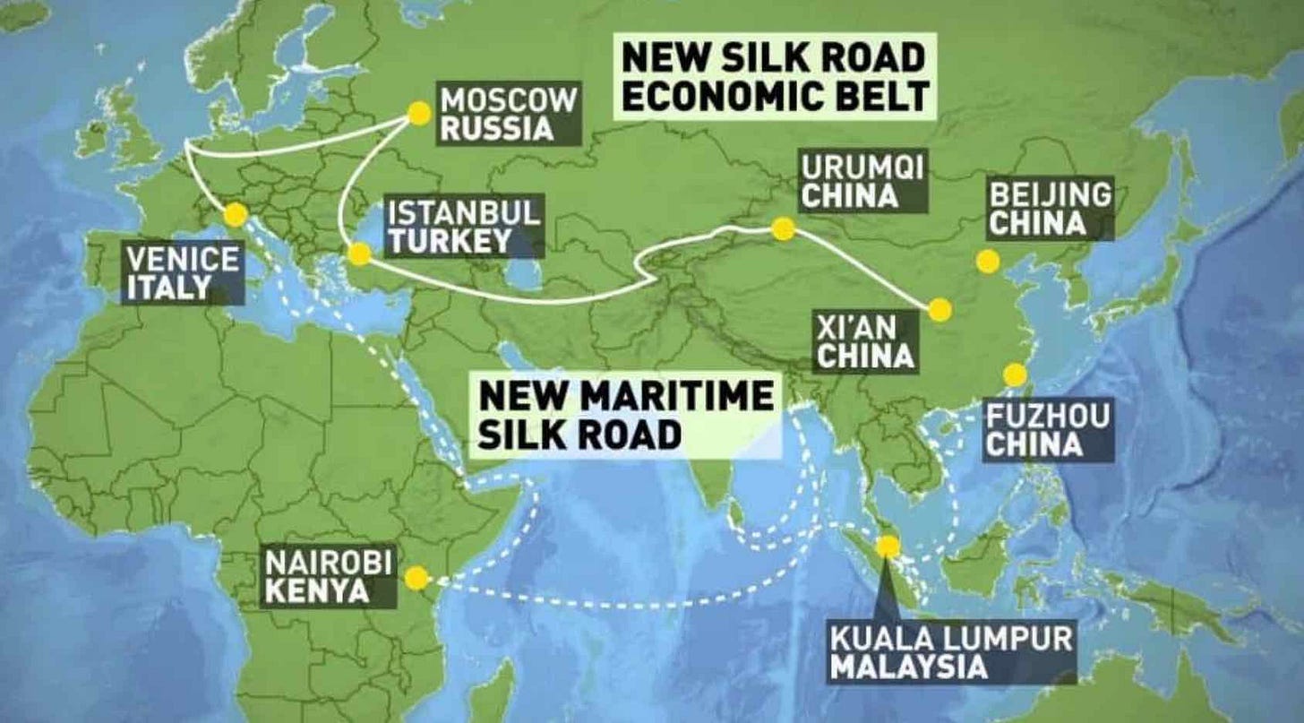 Much of their investment can be seen in the form of new shipping ports throughout Africa, railways across Asia, and in many companies that will support the physical build out of these mega projects.
