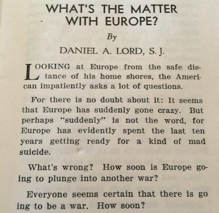 This little book printed 80 years ago may have different details, but the story is almost exactly the same. Financial debt, immigration issues, social unrest, and a slowing economy are all a carbon copy to the events that lead up to WW2.