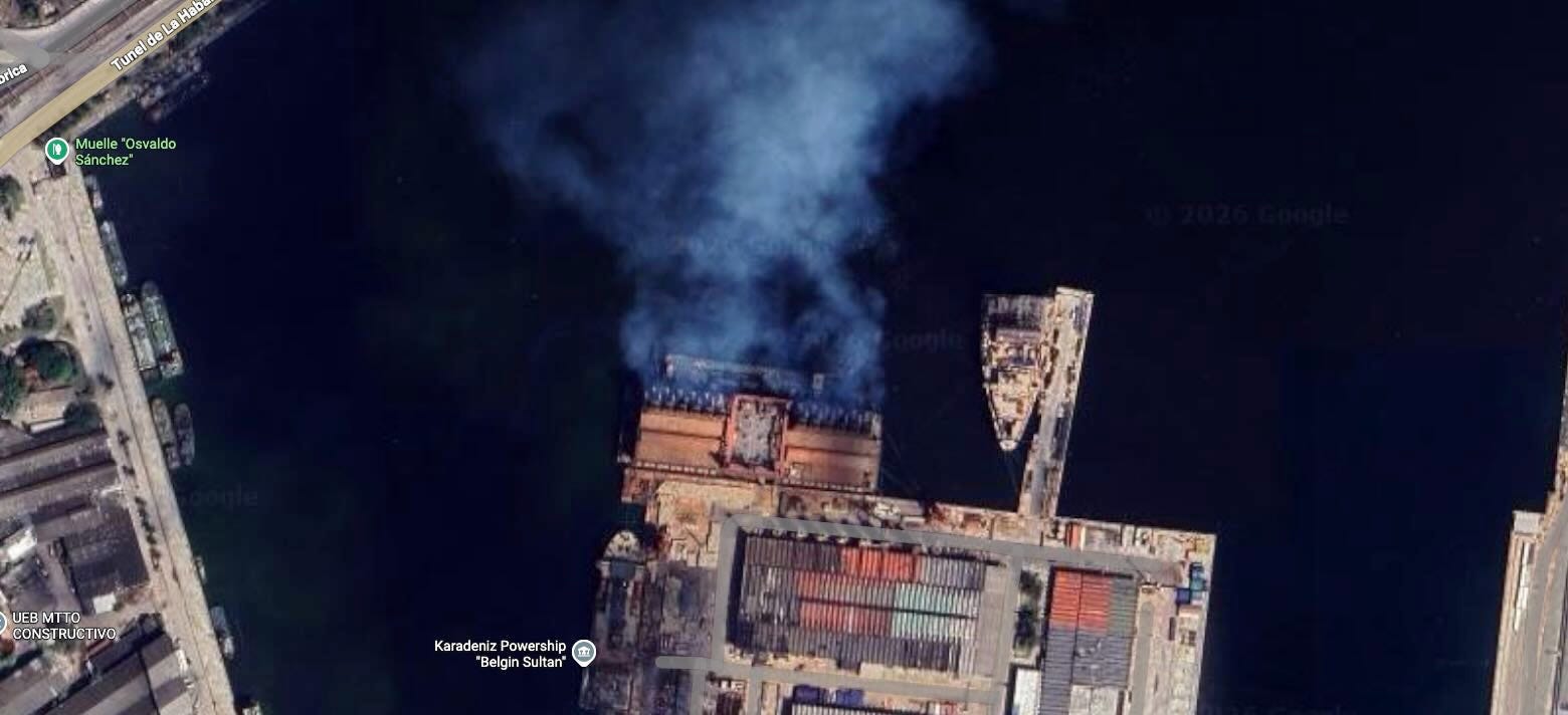 In the Port of Havana, the Karadeniz Powership “Belgin Sultan” has returned. Satellite views show the billowing smoke from another power generator docked nearby.