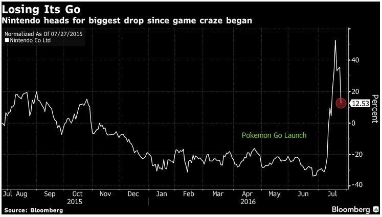 Lastly, Nintendo finally started to correct. Funny though, as everybody and their mom was calling for this one - the drop that is. The reason I bring up Nintendo at all, is just to show another example of the frothiness of certain areas of the market. I (fortunately or unfortunately?) wasn’t old enough to understand what was going during the dot com bust in 2000, but many analysts have started to compare today’s environment with those times. The major difference being that cheap money is fueling excessive values for seemingly useless businesses.That reminds me… the VIX, which I mentioned yesterday - I was weary about the market changing over night because more and more people are realizing the strange level of low volatility. We’ll see where it ends up by the end of the week. Probably flat; if not in the red. That’s because more and more people are investing in the US; especially foreigners who are afraid of the EU, Asia and everywhere else. I’ve been talking about it since Brexit. How, even though the US is in pretty bad shape, everyone else is worse. CNN agrees in this article, “Contrary to the ominous picture painted by Donald Trump, America has once again emerged as a port of safety for investors navigating the stormy world.”
