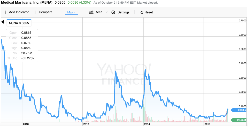 As soon as you see that MJNA is trading for literally pennies you think, “Well, I’ll buy some; it’s so cheap that it’s worth the bet.”