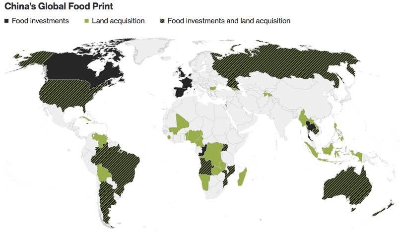 And that's exactly what China is on a mission to do. The Chinese have been acquiring agriculture land or investing in food production throughout the world. North America, South America, Europe, Africa, Australia, Asia, you name it and they have probably spent money there.