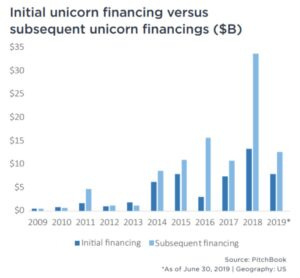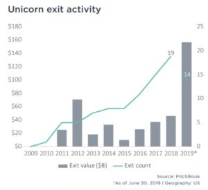 However, here we are half way through 2019 and there have been 14 unicorn companies that have gone public, with valuations exceeding a total of $150 billion.