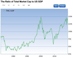 That ratio, of market cap to GDP, was recently at 146%, which is second only to 148.5% - the peak of the 2000 dot com bubble.