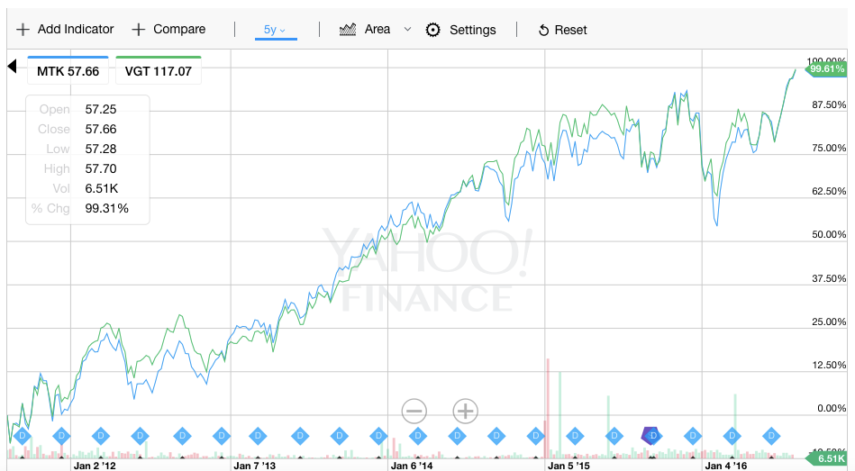 Here are the past 5 years of the SPDR Morgan Stanley Technology ETF and Vanguard Information Technology ETF. They are both up 100%: