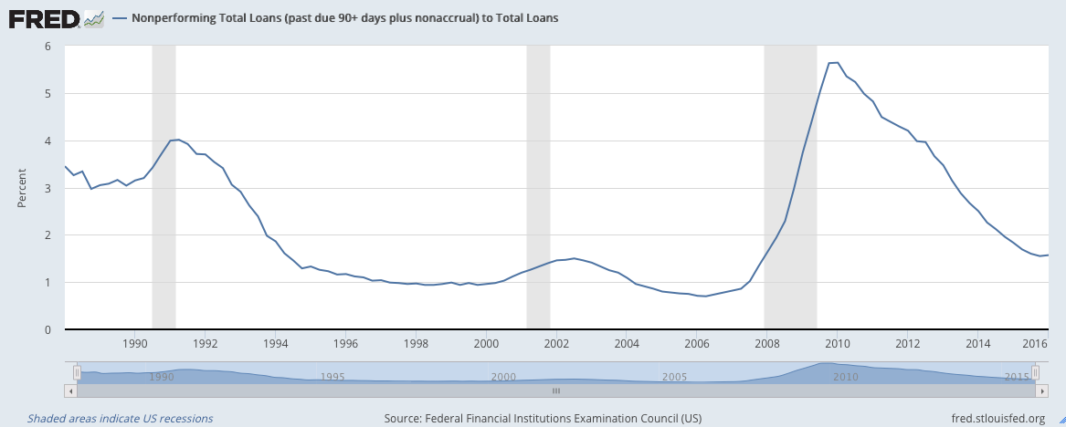 Let’s take a look at the US nonperforming loan rate since 1988: