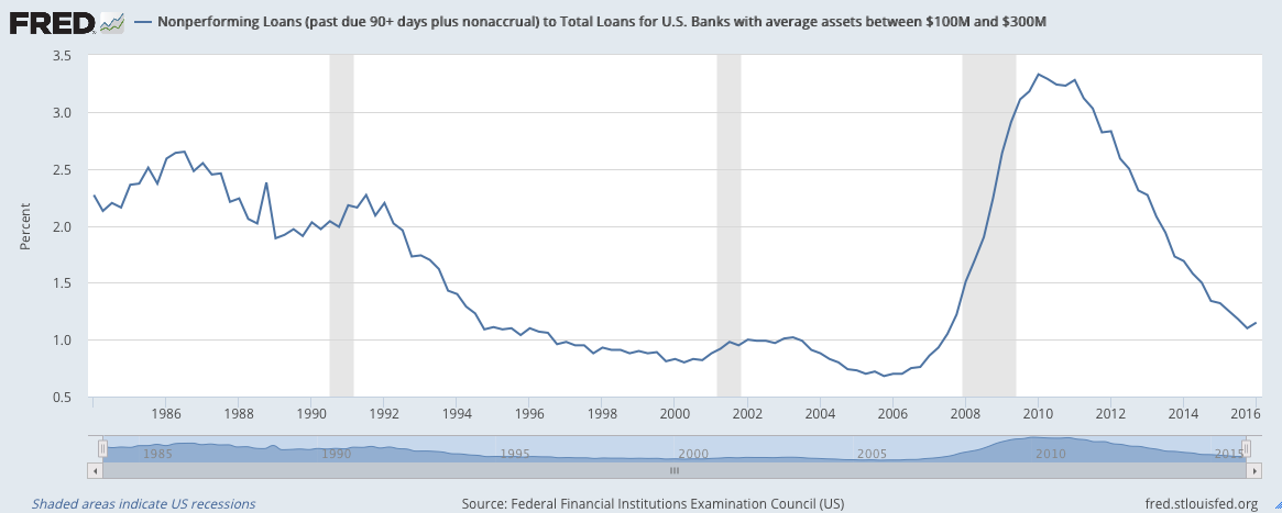 Here is the NPL rate for for U.S. Banks with average assets between $100M and $300M… you know smaller banks: