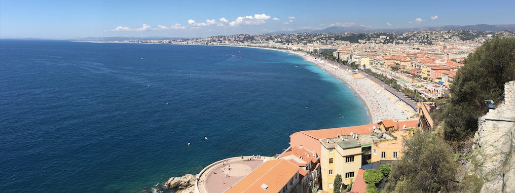 Ever since the attacks a couple weeks ago on July 14th, everyone else has had that concern too. In fact, many vacations have been cancelled and Nice has seen a drop in foreign tourists’ bookings by up to 10%. But that’s not what I am seeing. The streets are packed with traffic. Bars and restaurants are standing room only. People are enjoying the beach and life is going on. That’s not to say that there isn’t a feeling of sadness in the air. The multiple memorials setup on and nearby the boardwalk are very apparent.