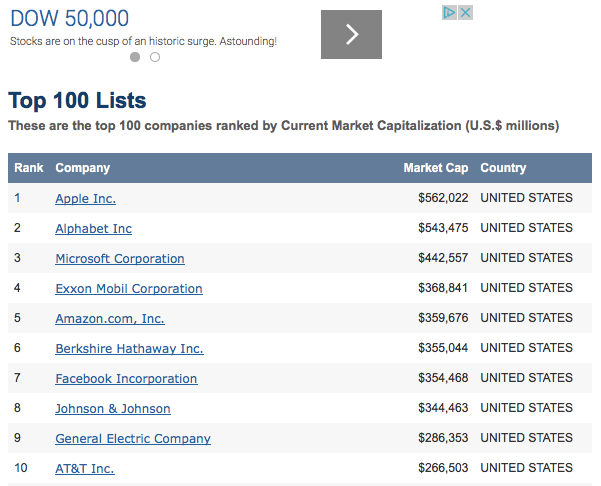 And… this list is not accurate… Amazon just overtook Exxon Mobil. AND SO DID FACEBOOK. (I used this list for a reason… I’ll mention it below.)