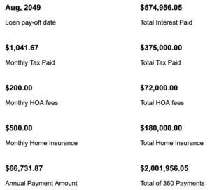 See the “Total Interest Paid,” the “Total Tax Paid,” the “Total HOA fees,” and the “Total Home Insurance?”